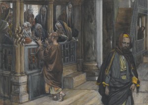 St. Matthew’s divinely‑inspired Gospel account alone tells us about Judas Iscariot’s negotiating with the chief priests the price of thirty pieces of silver for his betraying Jesus to them (Matthew 26:14-16), how that money was later used, and of its fulfilling prophecy (Matthew 27:7-10; confer Acts 1:18-19). St. Matthew refers to prophecy of Jeremiah (perhaps Jeremiah 18:2-12; 19:1‑13; 32:6-9), but Matthew seems to be using a shorthand that includes prophecy and action recorded by Zechariah (Zechariah 11:12-13). French painter and illustrator James Jacques Tissot’s depiction of Judas’s negotiations with the chief priests is reproduced on the front of tonight’s service outline, but no artist’s depiction can do justice to all the context and details of the Gospel account. For example, thirty pieces of silver was the value that Exodus records for the owner of an ox to pay the owner of a slave who was killed by the ox (Exodus 21:32). How do you picture that? Similarly, in Zechariah, thirty pieces of silver come up in connection with people’s severing their relationship with their shepherd. How do you picture that? In New Testament times, the thirty pieces of silver apparently equaled 120 denarii, which might be the pay to a laborer for 120 days of work. How do you picture that?