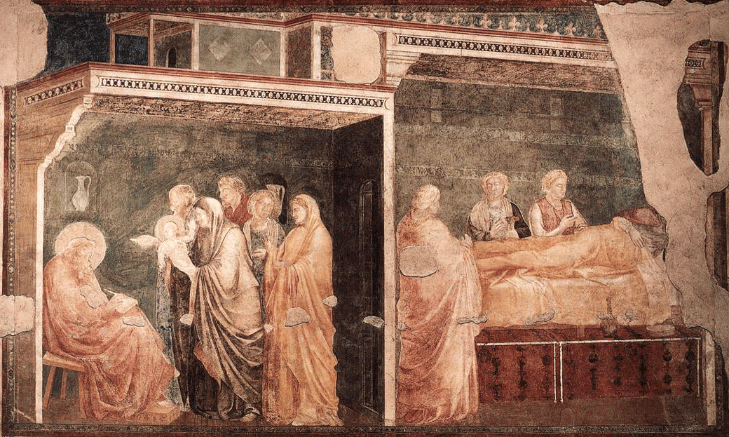 Italian painter and architect Giotto di Bondone (1266/67-1337) illustrated the birth and naming of John the Baptizer as narrated in Luke 1:57-80 in the Peruzzi Chapel of the Church of Santa Croce (the image is used from here).