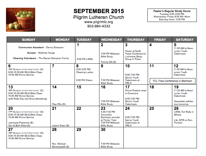 September Calendar 2015