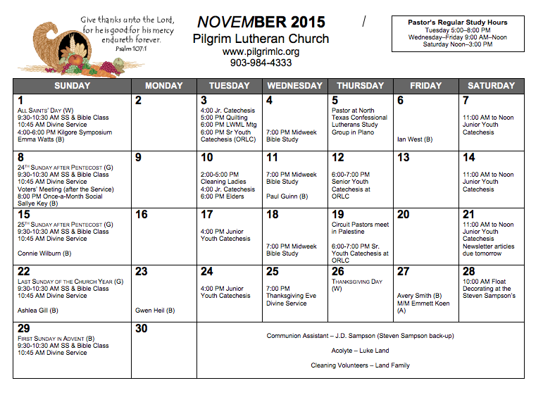 November Calendar 2015