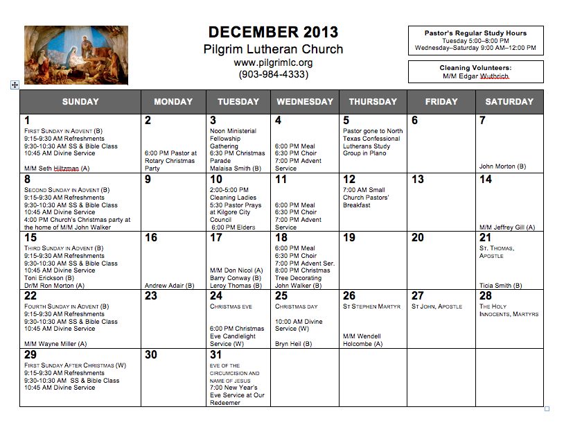 Calendar, December 2013