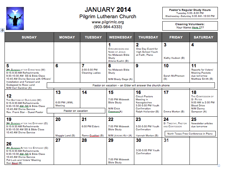 Calendar, January 2014