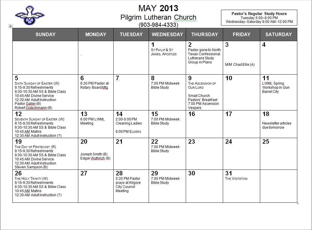 Calendar, May 2013
