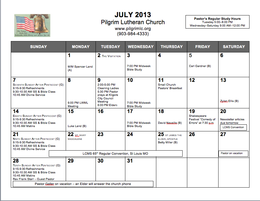 Click on the image to view Calendar at a larger size. Please note that the Potluck and Voters’ Meeting after church July 21 were inadvertently not included on the following Calendar.