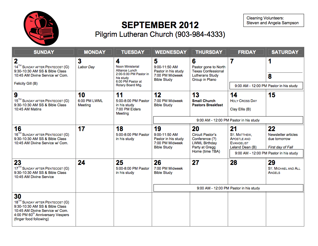 Calendar, September 2012