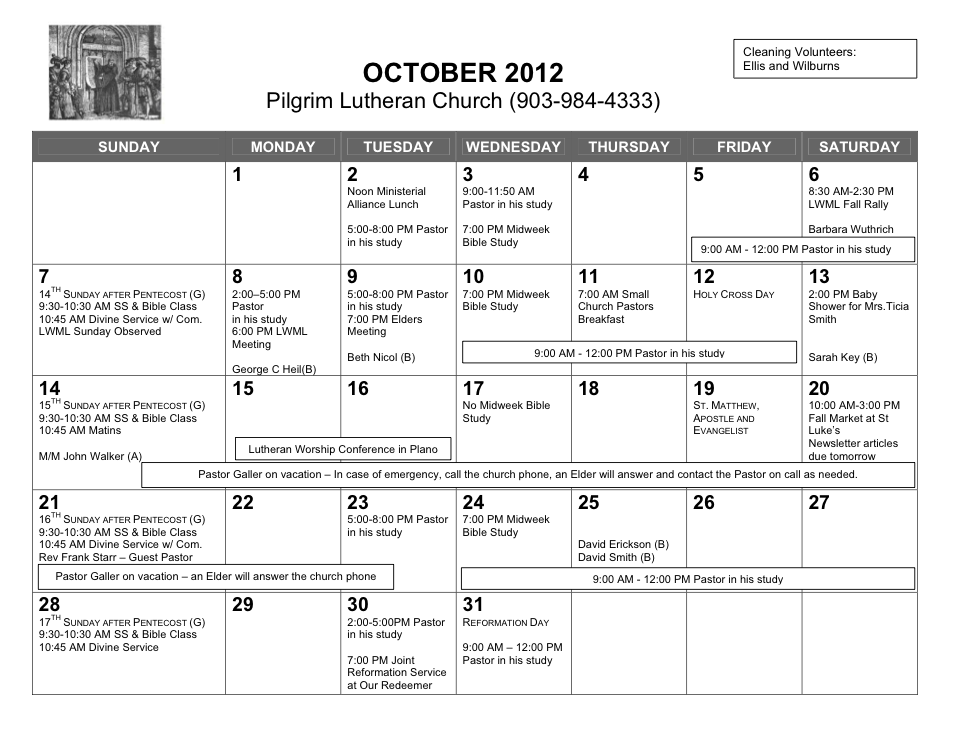 Calendar, October 2012