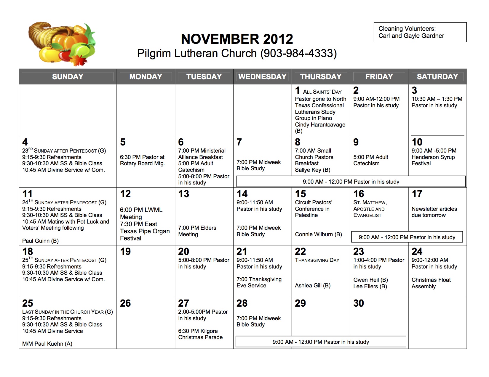 Calendar, November 2012