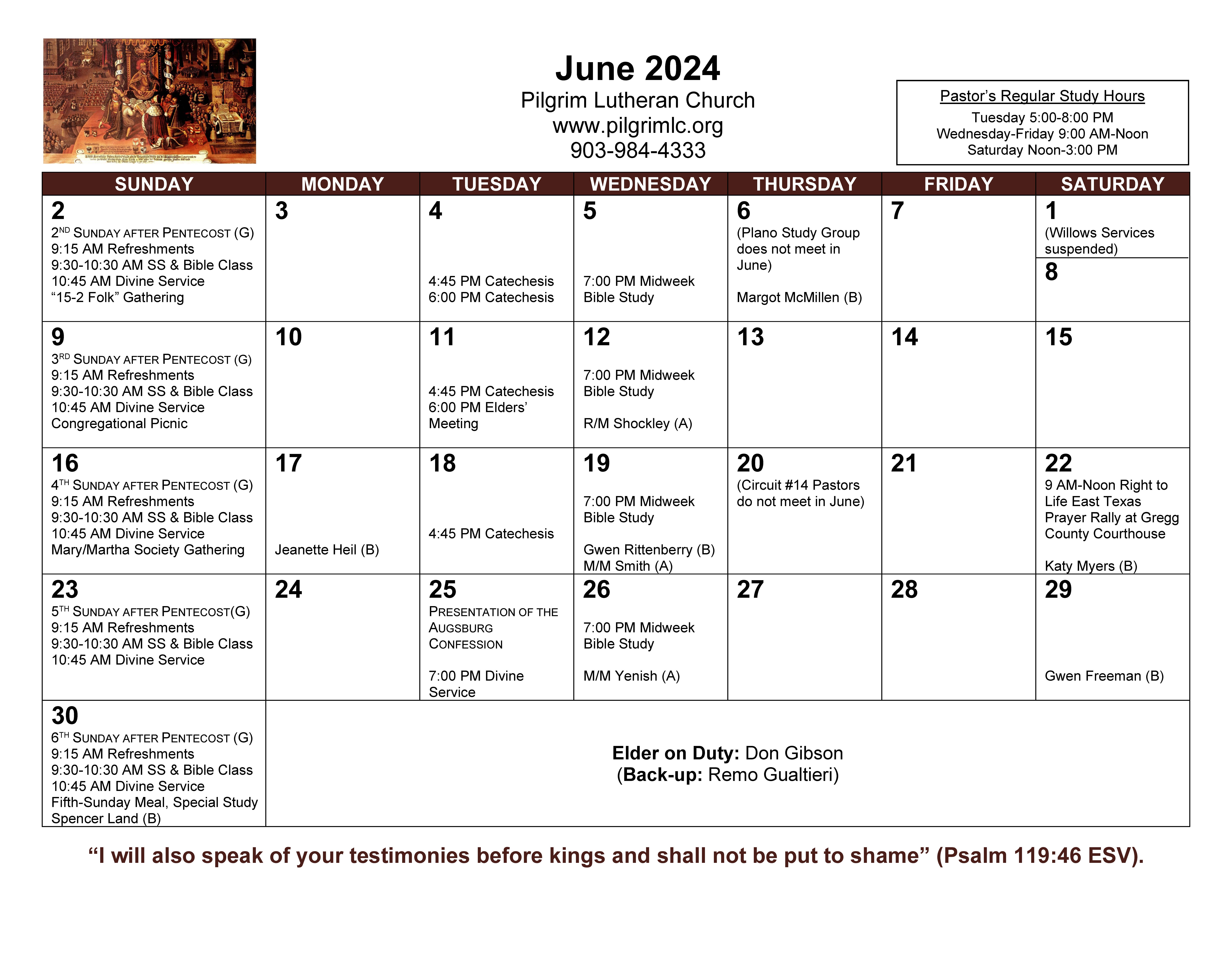 Please note both that there is no 6:00 PM Catechesis on Tuesday, June 4, and that the Mary/Martha Society will gather not on June 16 but on June 23.