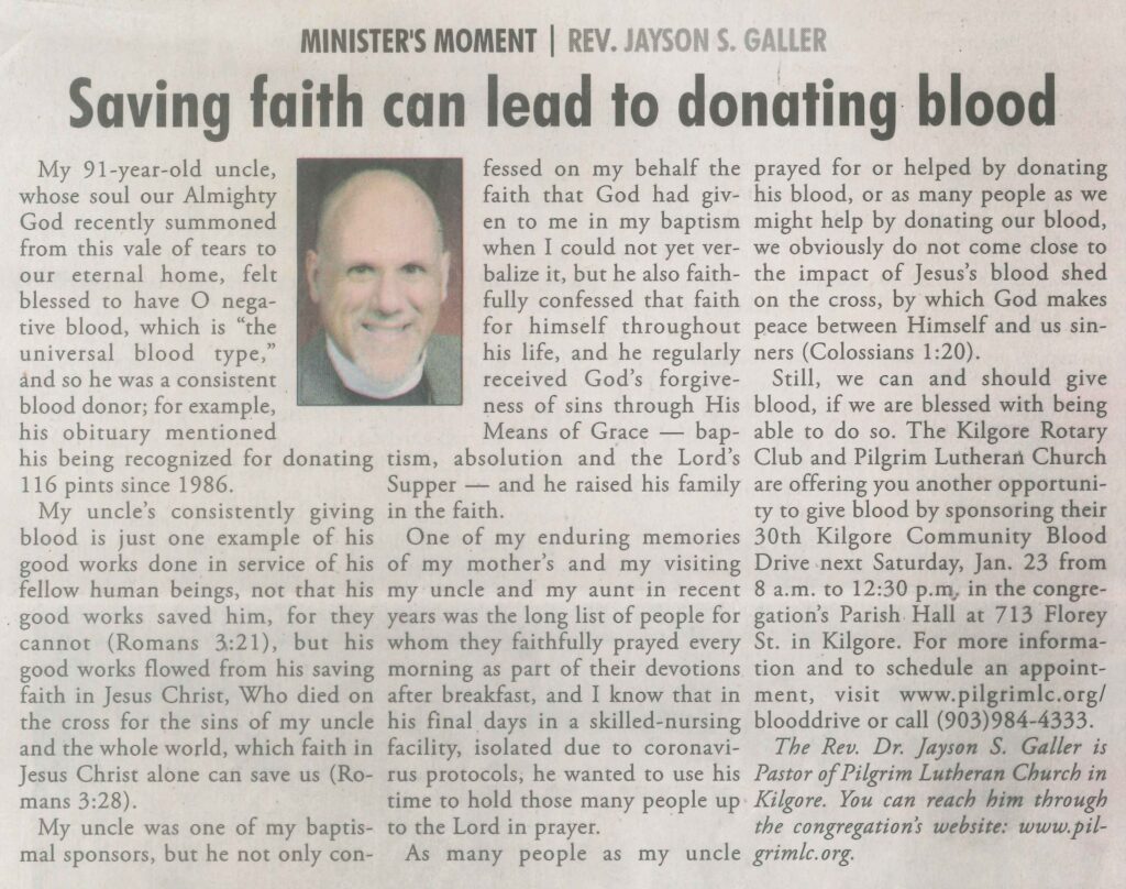 Pastor Galler is normally in his study Tuesdays 5:00-8:00 p.m., Wednesdays through Fridays 9:00 a.m. to Noon, and Saturdays Noon to 3:00 p.m.