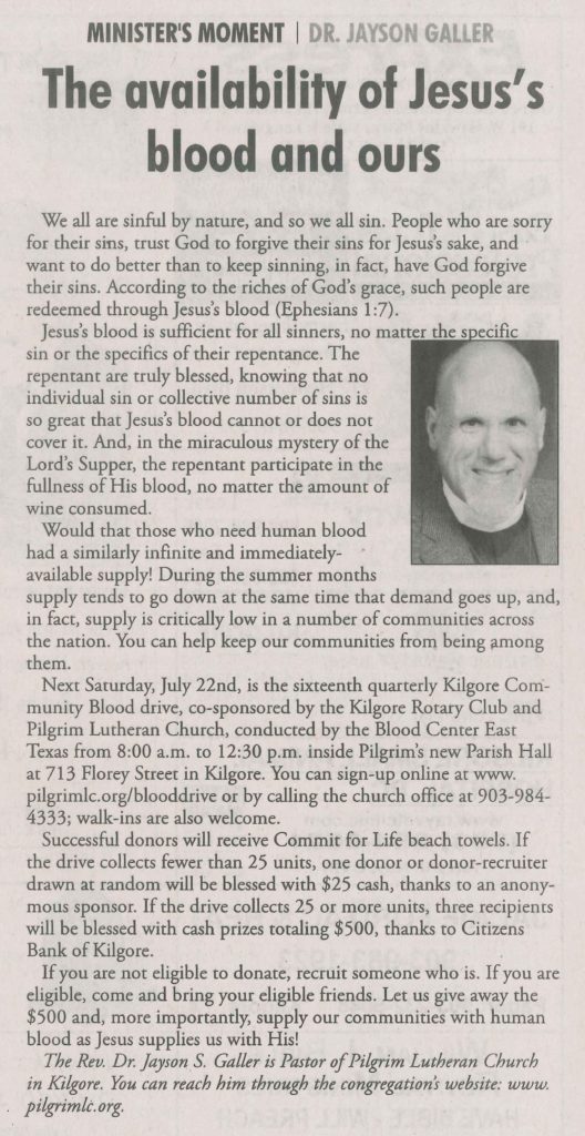 Pastor Galler is normally in his study Tuesdays 5:00-8:00 p.m., Wednesdays through Fridays 9:00 a.m. to Noon, and Saturdays Noon to 3:00 p.m.